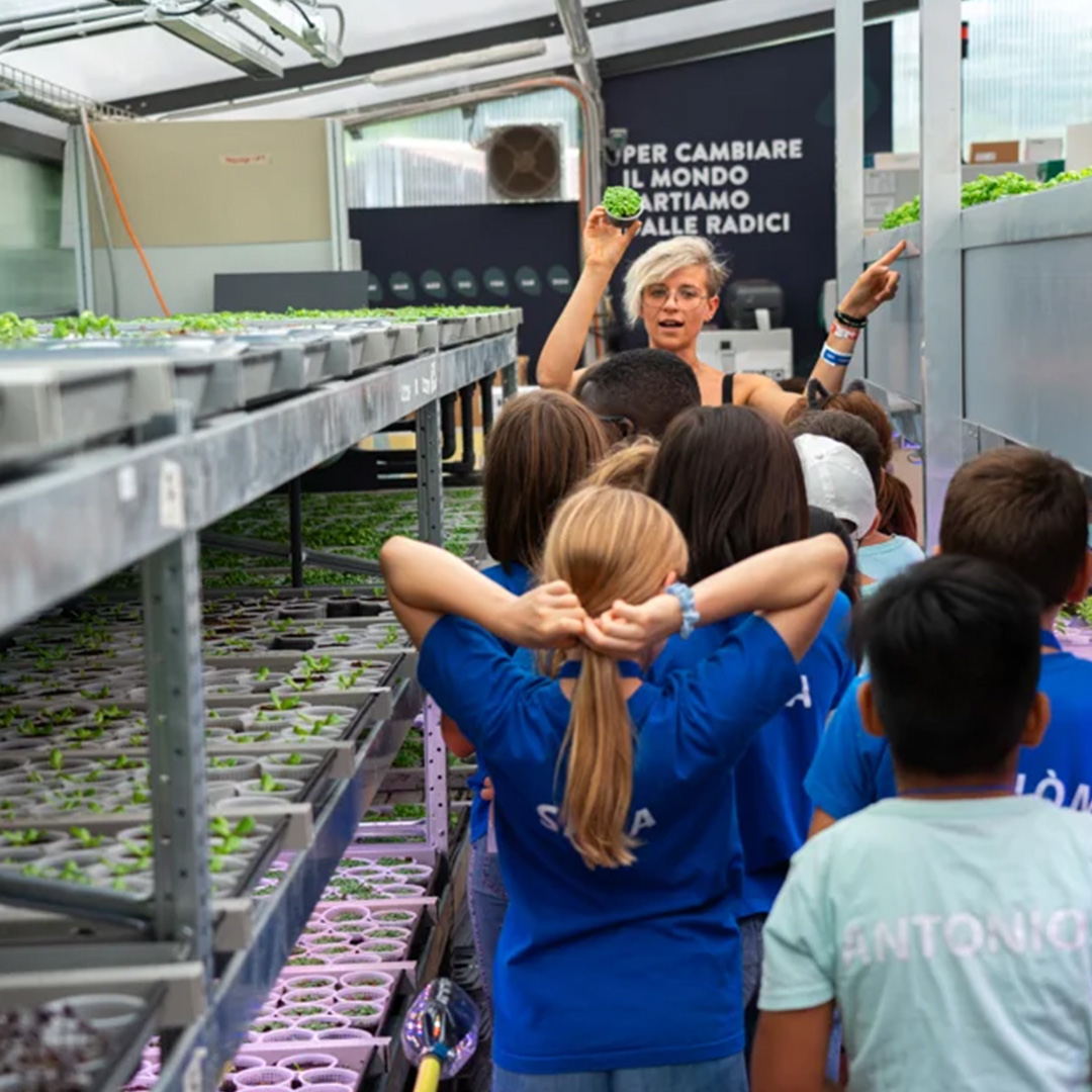 Nella nostra serra aeroponica Agli orti fioriti di Milano CityLife abbiamo incontrato i bambini delle classi quarte e quinte della scuola elementare dell’Istituto Comprensivo Rinnovata Pizzigoni con un laboratorio per toccare con mano la coltivazione aeroponica seminando le nostre piantine.