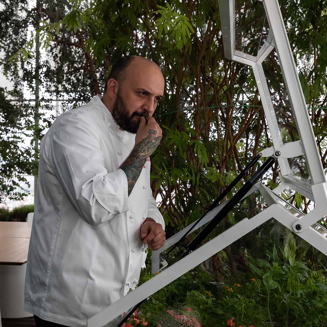 Since 2021, Michelin-starred chef Marco Sacco has integrated an aeroponic cultivation system developed by Agricooltur® into his daily work, bringing freshness directly into the kitchen. A concrete example of how technology can engage with haute gastronomie.