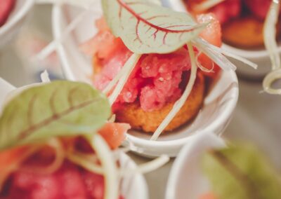 - In abbinamento a tecniche gastronomiche evolute che valorizzano texture, aroma e colore.