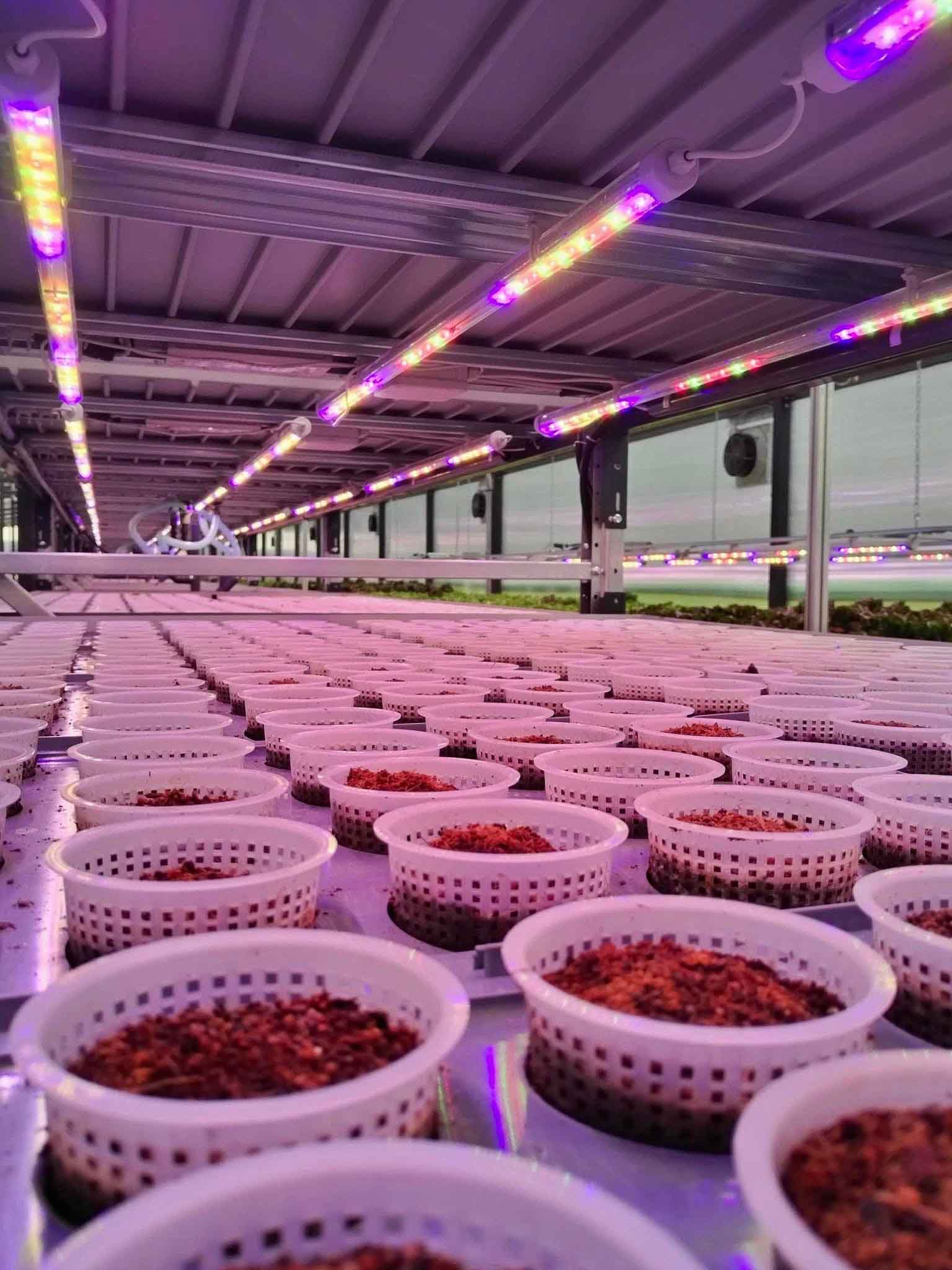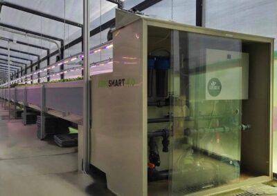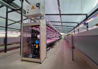 - Linee di coltivazione aeroponica che nebulizzano acqua e nutrienti direttamente sulle radici, senza l’uso di suolo;